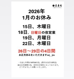 週末のご予約限界数に達したため18日、日曜日夜の営業はお休みさせていただきます。仕出し料理は当日13時迄受付。ご予約時間は18時30最終となります。1月26日(月)~29日(木)迄の4日間お正月休みをいただきます。1月定休日の変則多くなりますがどうぞよろしくお願いいたします(^^)/